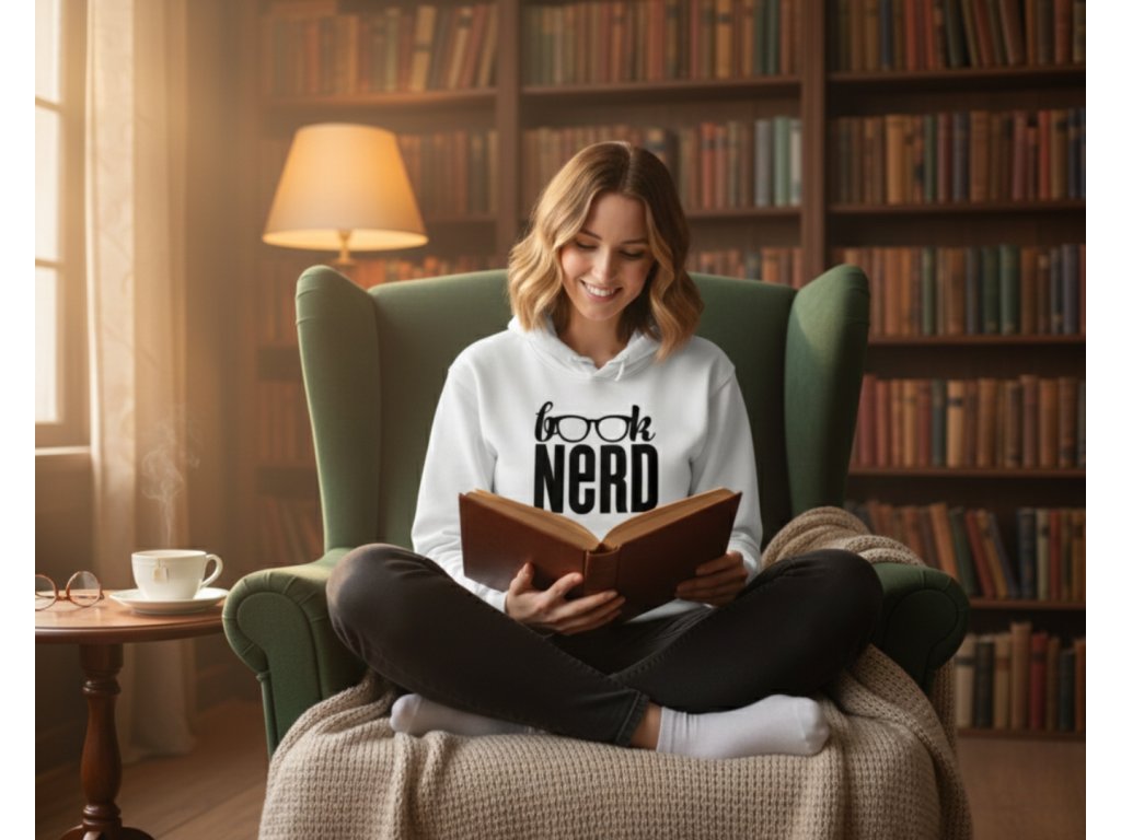 Ideálna mikina pre každého milovníka kníh, ktorý je hrdý na svoje čitateľské nadšenie. S nápisom "Book Nerd" a ikonickými okuliarmi predstavuje štýlový a pohodlný kúsok, ktorý podčiarkne vašu lásku k literatúre. Je to perfektná voľba na chvíle s obľúbenou knihou alebo ako ležérny odev na bežný deň.