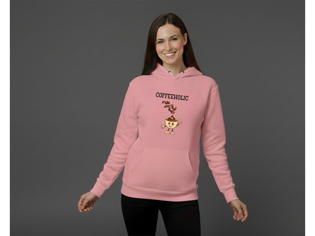 Dámska mikina pre všetky kávičkárky telom i dušou! S vtipným nápisom "COFFEEHOLIC" a roztomilou grafikou tancujúceho hrnčeka s kávovými zrnami. Je to perfektný kúsok, ktorý vyjadrí vašu lásku ku káve. Mikina je vyrobená z mäkkého, hrejivého materiálu, má pohodlný dámsky strih s kapucňou a vreckom. Dostupná je v obľúbených farbách: ružová, čierna a biela.