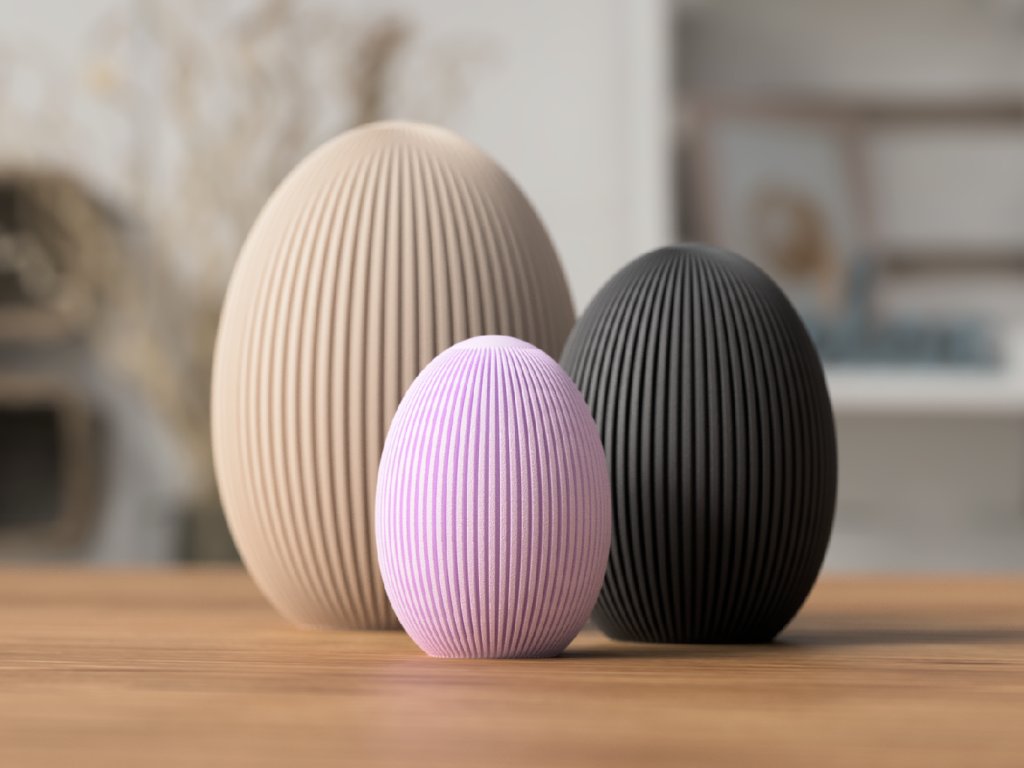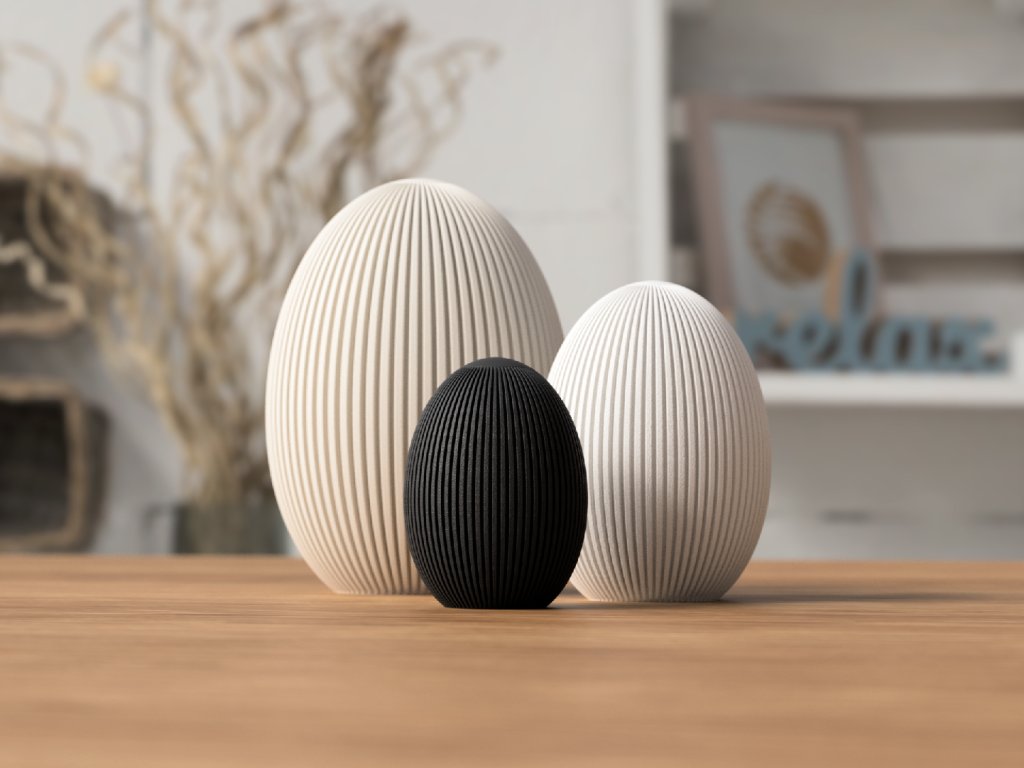 Zabudnite na klasické kraslice a stavte tento rok na minimalistický dizajn. Naše Easter Egg Ribbed sú dizajnové dekorácie vyrobené pomocou technológie 3D tlače, ktoré vynikajú svojou pravidelnou rebrovanou textúrou. Táto textúra dodáva vajíčkam hĺbku a v kombinácii s dopadajúcim svetlom vytvára krásny vizuálny efekt.