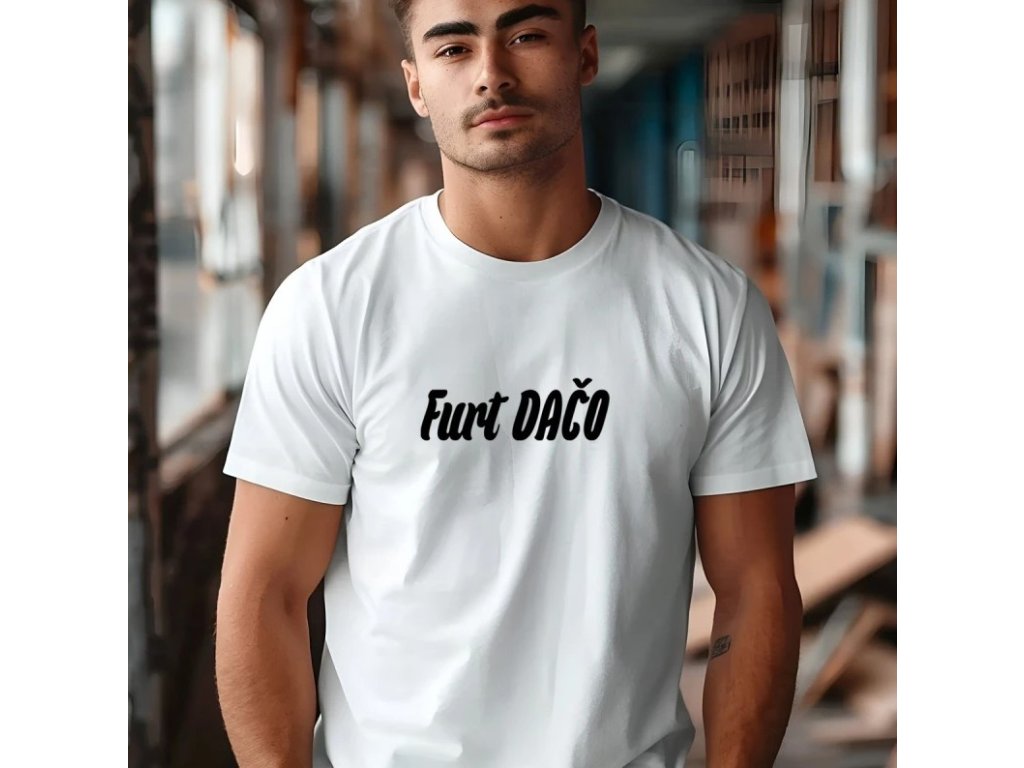 Pánske tričko Furt Dačo je voľbou pre mužov, ktorí majú radi humor a pohodlie v jednom. Dostupné je v klasickej bielej alebo čiernej farbe, takže sa hodí na každú príležitosť. Tričko je vyrobené zo 100% bavlny, vďaka čomu je priedušné a príjemné na nosenie počas celého dňa. Potlač „Furt Dačo“ dodáva tričku jedinečný charakter, ktorý ťa odlíši od davu. Jednoduchý a univerzálny dizajn z neho robí must-have kúsok do tvojho šatníka.