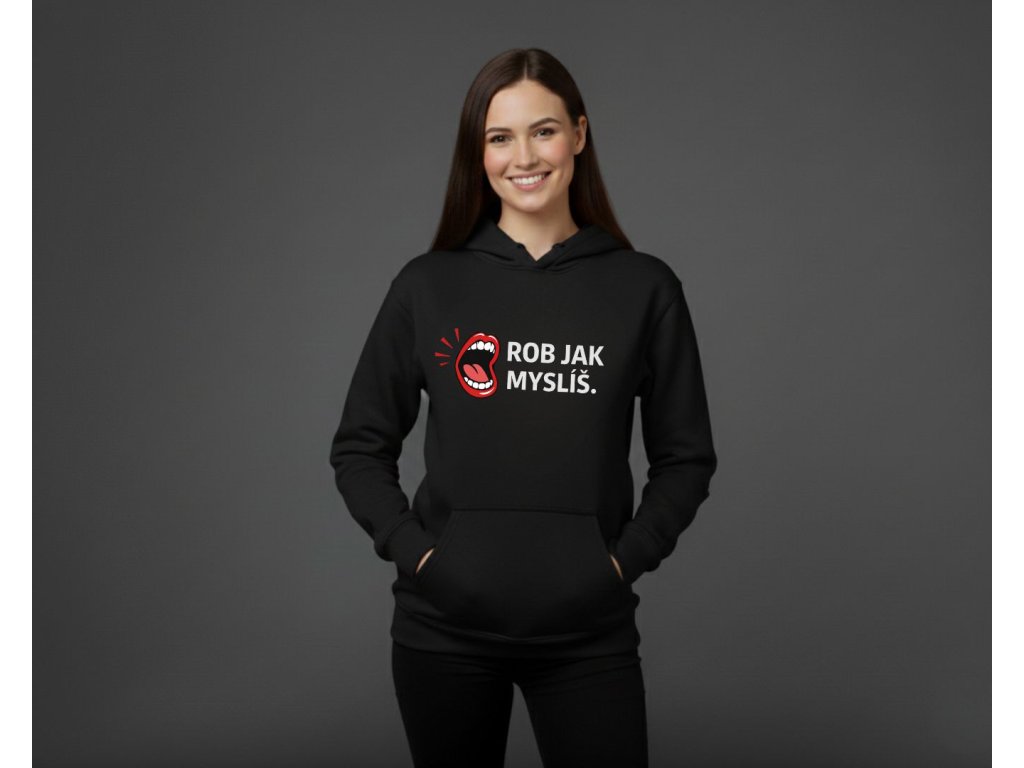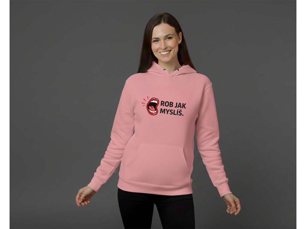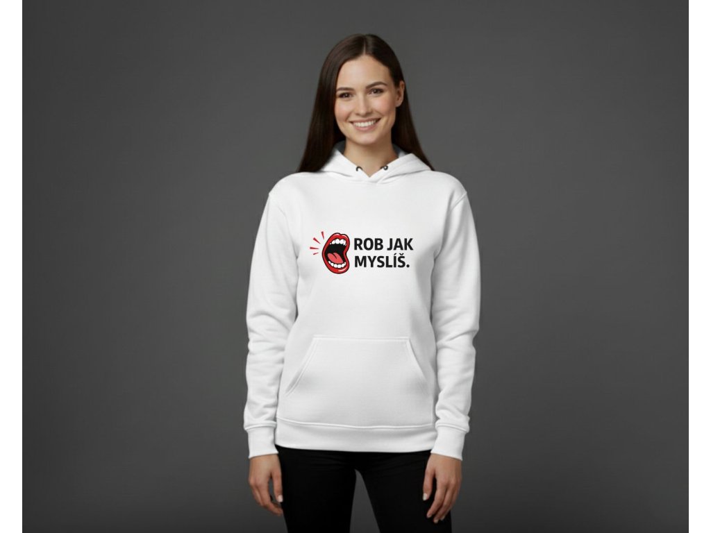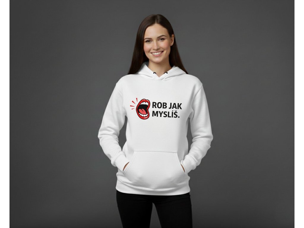 Teplá mikina s ironickým odkazom, ktorý pozná každá žena: keď poviete "Rob, ako myslíš", myslíte tým presný opak. Mikina s vtipnou potlačou otvorených úst a nápisom "ROB JAK MYSLÍŠ." je ideálna na chladné večery. Dostupná v bielej, čiernej a ružovej farbe. Je to perfektný darček, ktorý zahreje a pobaví.