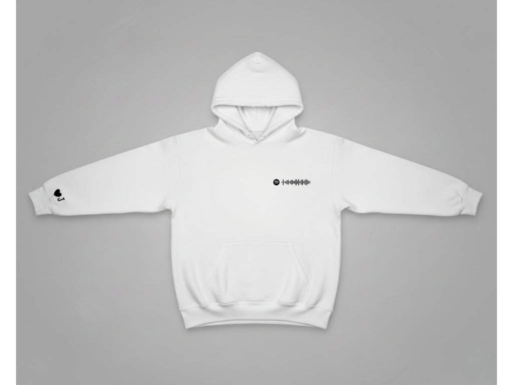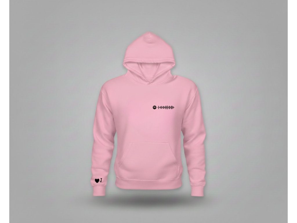 Na ľavo na hrudi sa nachádza váš personalizovaný Spotify kód. Na rukáve každej mikiny je umiestnená iniciálka vášho partnera alebo partnerky so srdiečkom (napríklad ♡ A pre neho a ♡ B pre ňu). Je to malý, súkromný symbol, ktorý vás spája. Mikiny sú vyrobené z mäkkého, hrejivého materiálu a majú pohodlný strih s kapucňou a vreckom.