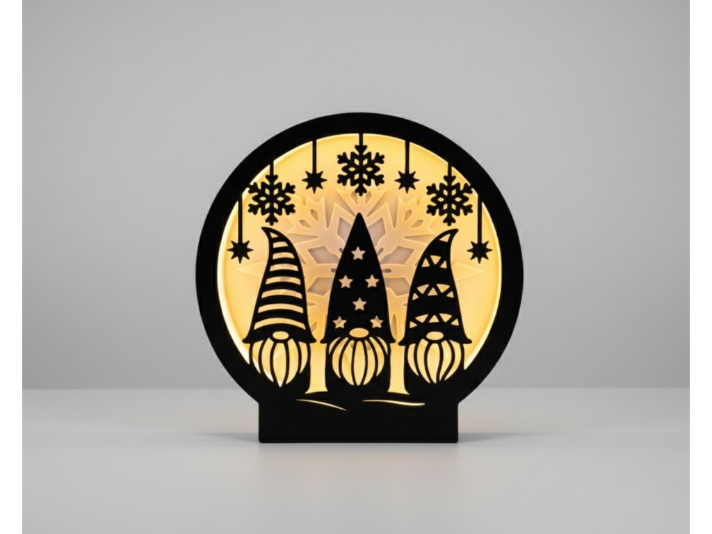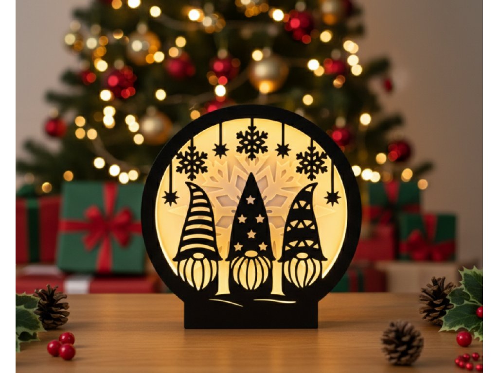 Vneste do svojho domova kúsok vianočného humoru s touto roztomilou 3D tlačenou lampou. Zachytáva trojicu usmievavých škriatkov (trpaslíkov), ktorí dohliadajú na sviatočnú pohodu. Táto lampička je ideálnym doplnkom, ktorý rozveselí detskú izbu, poličku alebo dotvorí hravú vianočnú dekoráciu.