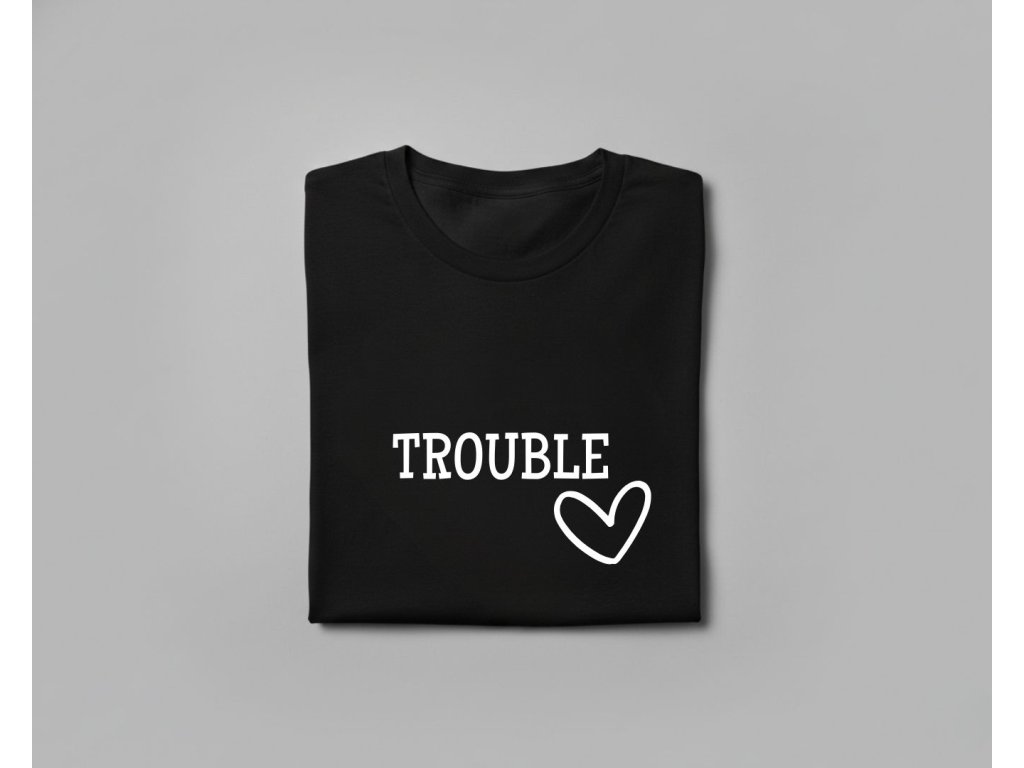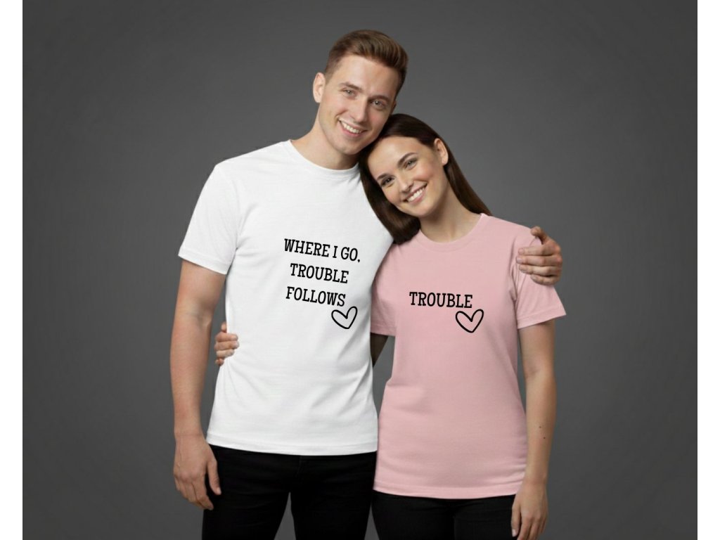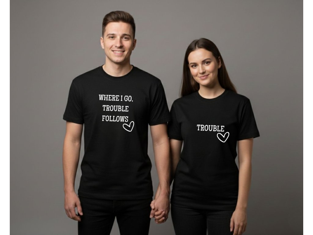 Ak je váš vzťah plný spontánnosti, smiechu a občasného riadeného chaosu, tieto tričká sú presne pre vás! Sú určené pre páry, ktoré vedia, že láska je dobrodružstvo a že za všetkou "neplechou" (Trouble) môže stáť len jeden človek...